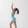 Poliamida com aspecto natural opaco, toque macio e gelado, proporciona sensação de leveza alongamento e elasticidade. De alta filamentação, confere secagem rápida e permite maior conforto térmico. Possui baixa transparência e boa compressão fornecendo maior sustentação e segurança. Com proteção UV 50+ permanente.