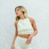 Poliamida com aspecto natural opaco, toque macio e gelado, proporciona sensação de leveza alongamento e elasticidade. De alta filamentação, confere secagem rápida e permite maior conforto térmico. Possui baixa transparência e boa compressão fornecendo maior sustentação e segurança. Com proteção UV 50+ permanente.