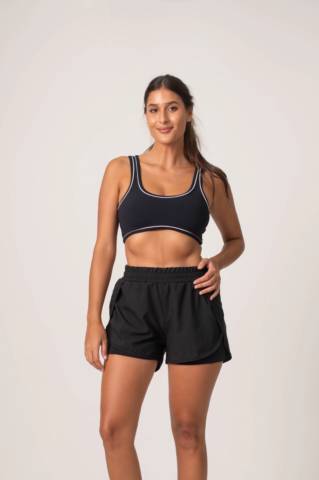 Possui short interno com comprimento ideal e bolso funcional, garantindo mais segurança e liberdade de movimento. A cintura com elástico confortável se ajusta ao corpo com suavidade, sem apertar.