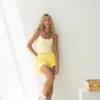 SHORT DE BAIXO – Poliamida com aspecto natural opaco, toque macio e gelado, proporciona sensação de leveza alongamento e elasticidade. De alta filamentação, confere secagem rápida e permite maior conforto térmico. Possui baixa transparência e boa compressão fornecendo maior sustentação e segurança. Com proteção UV 50+ permanente.