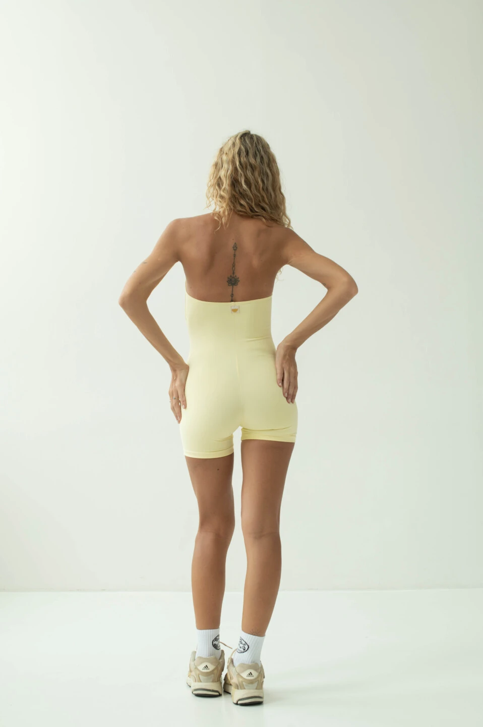 Macaquinho curto com modelagem justa ao corpo e alças largas em decote halter, que valoriza os ombros e o colo. Feito em tecido com compressão, oferece sustentação, conforto e liberdade de movimento. Versátil, é perfeito tanto para treinos quanto para looks casuais e estilosos. Não marca e tem o comprimento ideal para não enrolar e não subir. Não possui costura frontal. Possui forro frontal no busto. Recomendamos usar calcinha bege sem costura.