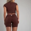 Poliamida com aspecto natural opaco, toque macio e gelado, proporciona sensação de leveza alongamento e elasticidade. De alta filamentação, confere secagem rápida e permite maior conforto térmico. Possui baixa transparência e boa compressão fornecendo maior sustentação e segurança. Com proteção UV 50+ permanente.